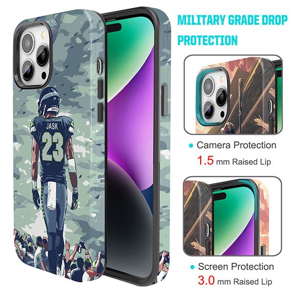 Custom Football Phone Case for iPhone – Personalized Your Name and Number – Seattle Design